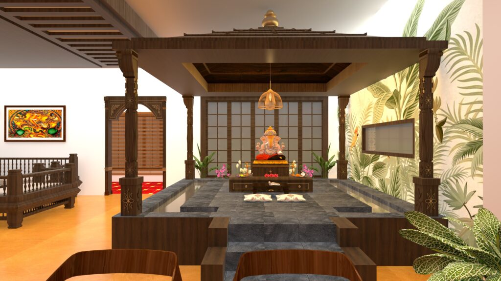 Serene and spiritual spaces designed with traditional charm and modern elegance, creating the perfect corner for daily prayers and peace.