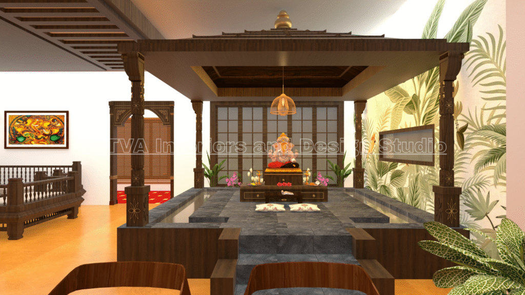 The Traditional Indian interior design theme is a timeless blend of regional craftsmanship, rich colors, and spiritual elegance. This theme celebrates India’s cultural diversity by integrating elements like carved wood furniture, brass accents, vibrant textiles, and sacred geometry.
