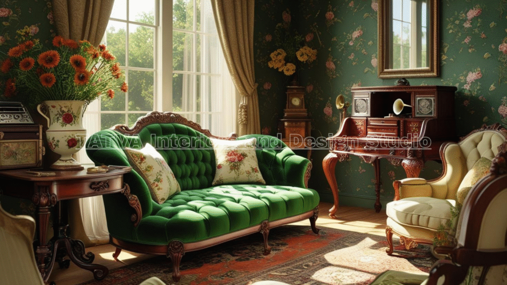 Vintage Charm interiors celebrate the warmth and character of bygone eras. This style brings together classic furniture, antique accessories, floral patterns, and rich textures that evoke old-world charm. It’s a beautiful blend of elegance, sentimentality, and personality, perfect for those who appreciate history, craftsmanship, and nostalgia in their living spaces.
